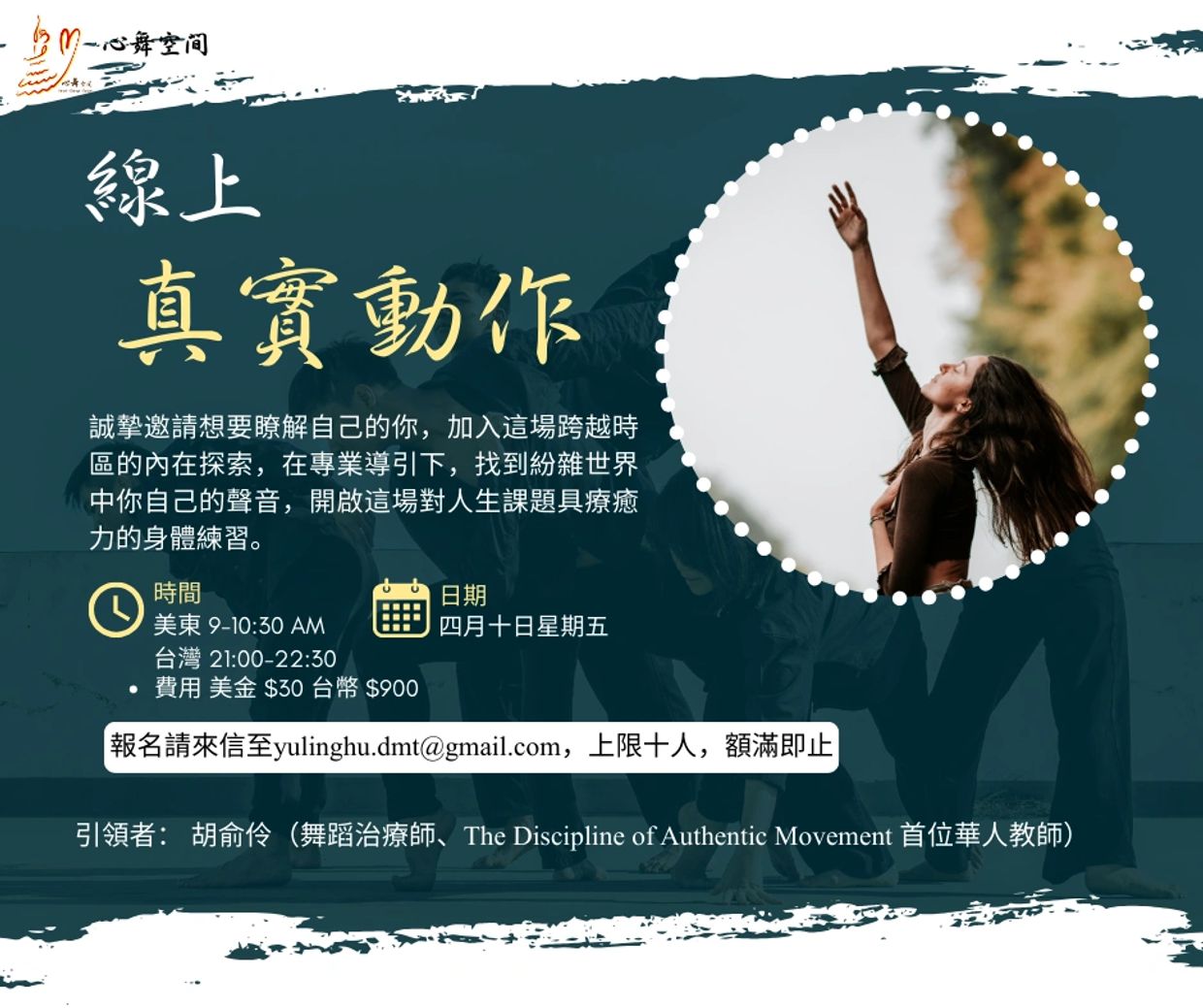 珍娜.愛得樂發展的真實動作修煉(The Discipline of Authentic Movement),看似簡單的形式,卻可以深入覺察蘊藏在身體及內心中的情緒、習慣、感受甚至是隱藏的記憶。