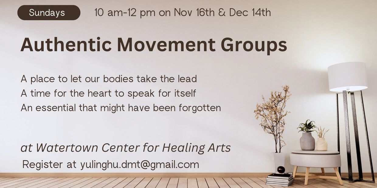Authentic Movement is a powerful practice in which a person makes a conscious choice to be a mover while being accompanied by a compassionate and non-judgmental witness (teacher/therapist). The movers follow their inner impulse and choose to move or be still and explore sounds, space, sensations, images or memories in their movement experience. Through the practice, we develop out somatic attunement to ourselves and to the external world, Having a compassionate witness to support their journey can make the mover’s experience safe and possible to integrates the mind, body and spirit.